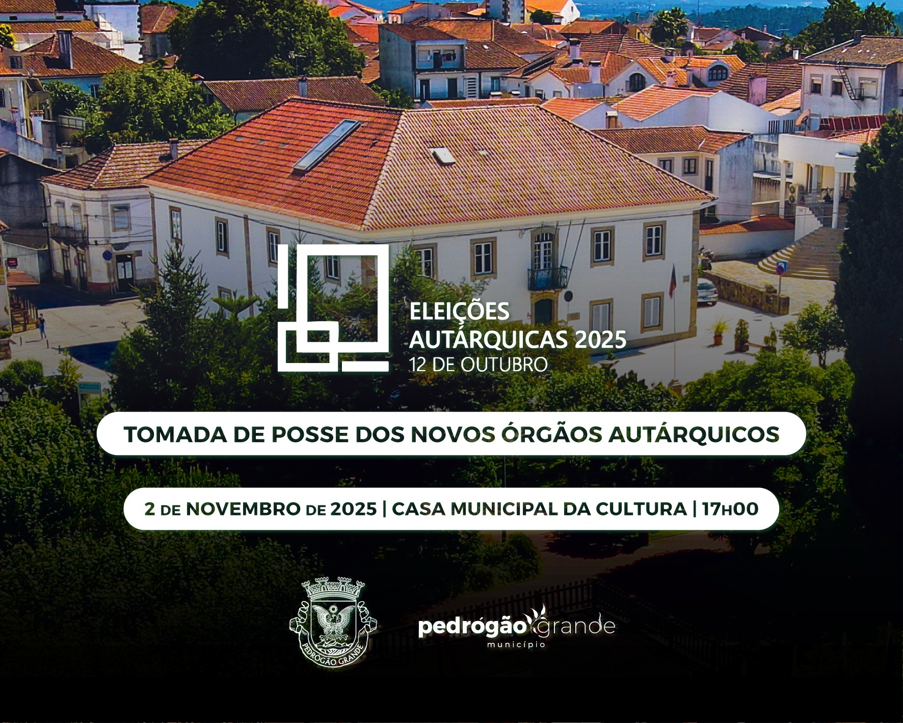 A cerimónia de instalação dos novos órgãos autárquicos, eleitos democraticamente no passado dia 12 de outubro, realiza-se no próximo dia 2 de novembro (domingo), às 17h00, na Casa Municipal da Cultura de Pedrógão Grande.